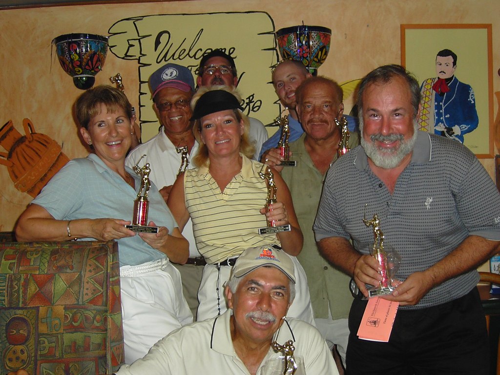 On Sunday, October 24th, the 4th Golf Tournament 2004 was held at the Savanna Club in Port St. Lucie with the participation of 11 couples. The tournament was played in a “Two Persons Best Ball” format in a spirit of true camaraderie. All proceeds generated were earmarked for the scholarship fund of the “Spanish American Club, Inc. Scholarship Fund.” The winners were: 1st “Low Gross”; Tyson Waters, Jack Sobel; 2nd “Low Gross”; Leticia Goff and Muriel Annunziata. 3rd “Low Gross”; Rico Arnell and Nick Arnell. The “Longest Drive” hole, sponsored by Jensen Beach Cleaners, was won by Ruben Sanchez. The “Closest to the Pin” hole, sponsored by the Latin Chamber of Commerce of the Treasure Coast, was won by Tom St. Clare, and the other “Closest to the Pin” hole, sponsored by Mystica, Exotic Home Accessories, was won by Nick Arnell. Rich Rodriguez won the “Fishing Lures” prize donated by Unfair Advantage Fishing Lures “DOA.”