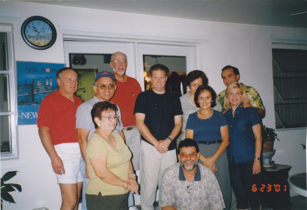 The enthusiasm of the members, the rich Latin food, and the music made the monthly gathering of the members at Ed and María Finnerty’s residence in Port St. Lucie a delight. From early in the afternoon on June 23, the members and guests began to arrive and enjoy the delicious buffet that the Finnerty family had prepared for us. As always, it started with a cocktail while dinner was being prepared. The buffet had all kinds of offerings for the palate, from the delicious rice with pigeon peas, moros y cristianos, roasted pork to salads.