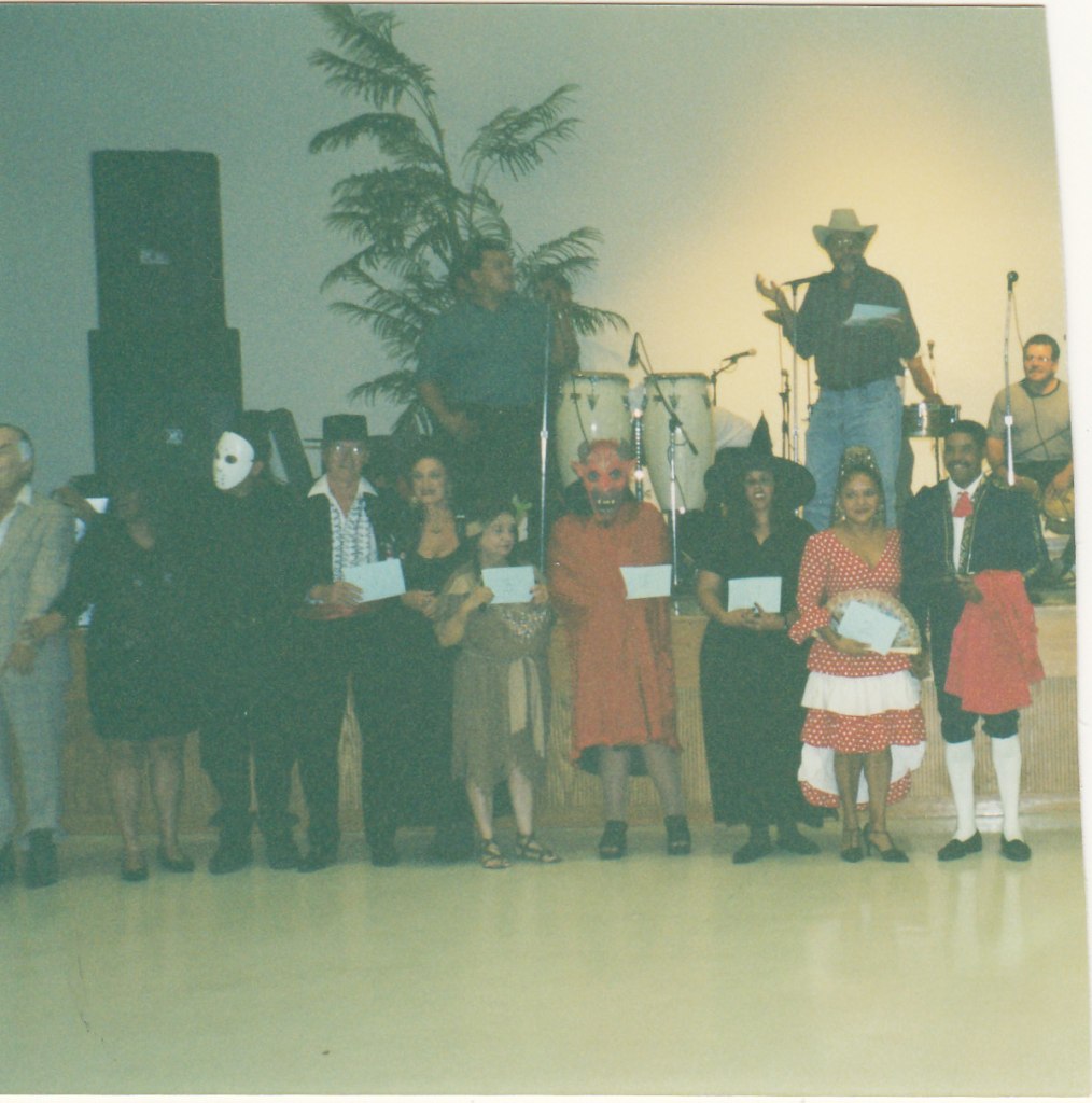 The winners of the costume competition were: 1st place Nick Hevia, who was awarded a check for $25.00. Nick dressed in an Arabian style. In 2nd place was Juan Calderón, who received a free ticket to the “Scholarship Dance.” Juan dressed as a bullfighter, and in 3rd place was Doris P. Gioia, who also won a free ticket to the “Scholarship Dance.” She dressed in a space-themed costume.