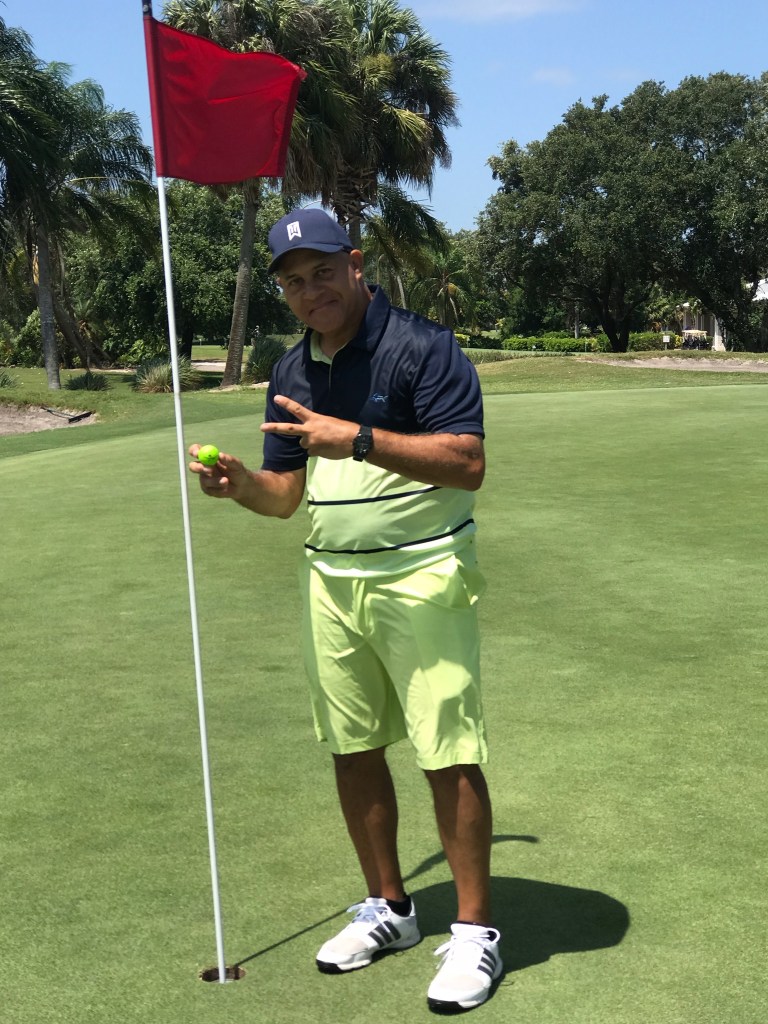 Jorge Crespo made two Eagles on Friday, May 24, 2019, at The Saints Golf Club in Port St. Lucie. Jorge aced the 490 yard-par 5, Hole No. 2 using a driver, then he used his 9 irons from 140 yards. Then he aced the 490 yard-par 5, Hole No. 9 using a driver, then he used his 6 irons. He was part of the SACI group with David Santiago and Ruben Aleman.