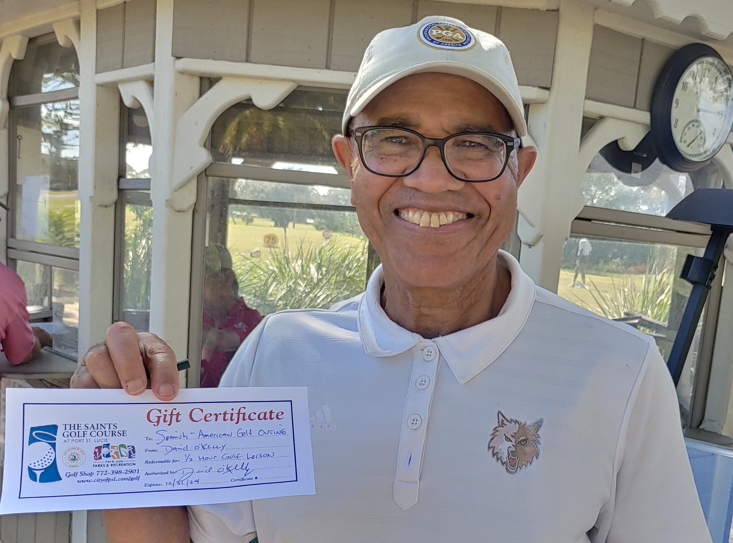 50/50 Raffle door prizes winners; Carlos Rodriguez, Herman Santa (1 round of golf) Donated to Cecil Elie; David Santiago (Box of Wilson golf balls), Brendan McCann (1/2 hour of Golf lesson with Arlen Bento) and Iggy Fernandez (1 certificate from Saint’s Pub)